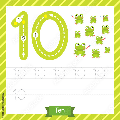 Number Ten Tracing Practice Worksheet With 10 Frogs For Kids Learning To Count And To Write Vector Illustration Buy This Stock Vector And Explore Similar Vectors At Adobe Stock Adobe Stock