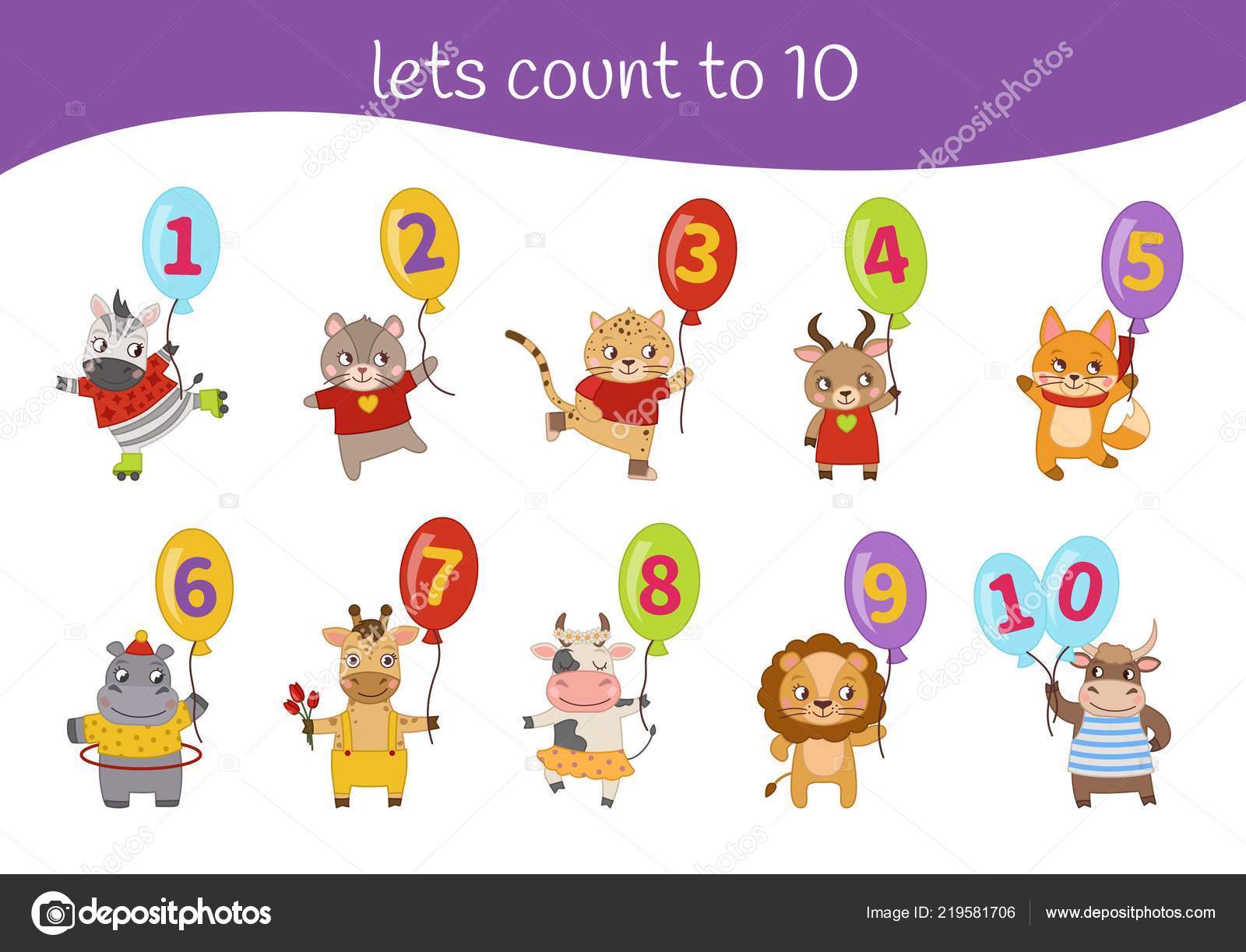 Numbers Cartoon Cute Kids Learning Material Card Learning Numbers Number Cartoon Cute Animals Stock Vector C Igdeevaalena 219581706