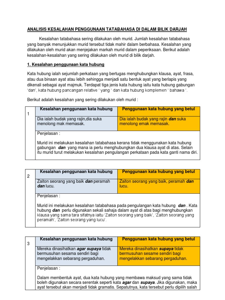 Analisis Kesalahan Penggunaan Tatabahasa Di Dalam Bilik Darjah