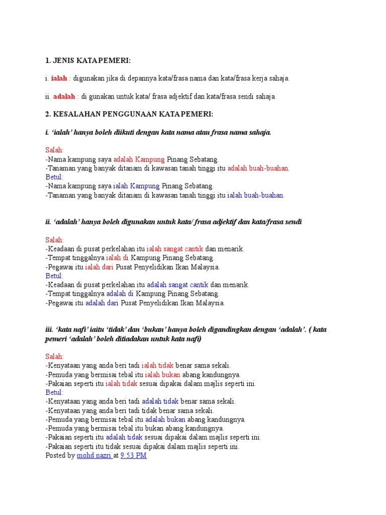 Contoh Ayat Kata Pemeri Ialah Dan Adalah Materi Pelajaran 9
