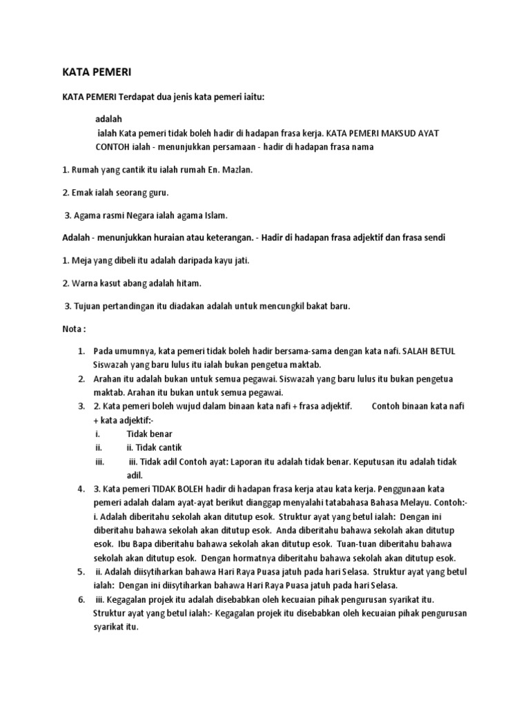 Kata Pemeri Maksud Ayat Contoh