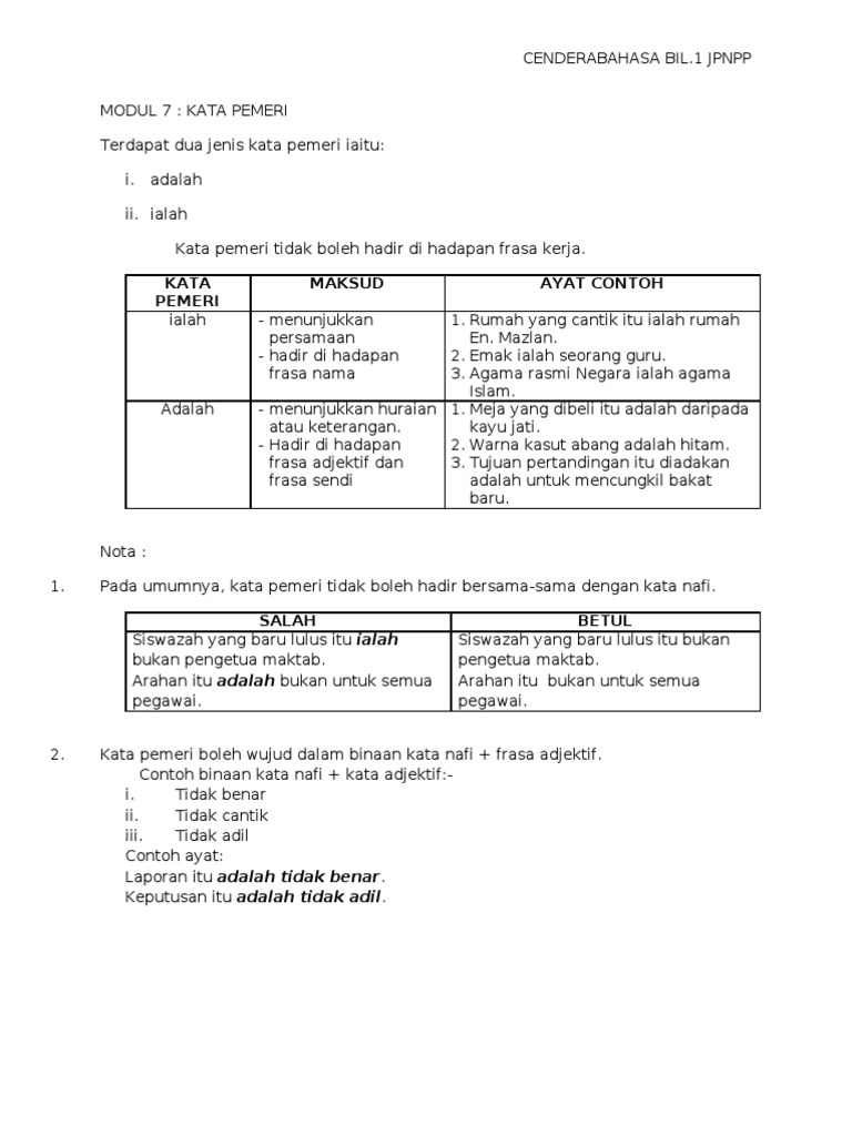 Ialah Adalah 1 Jenis Kata Pemeri