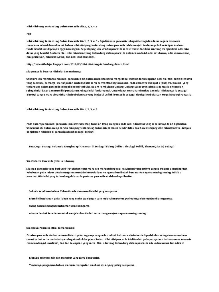 Nilai Nilai Pancasila Lengkap Sila Ke 1 2 3 4 5 Dalam Kehidupan