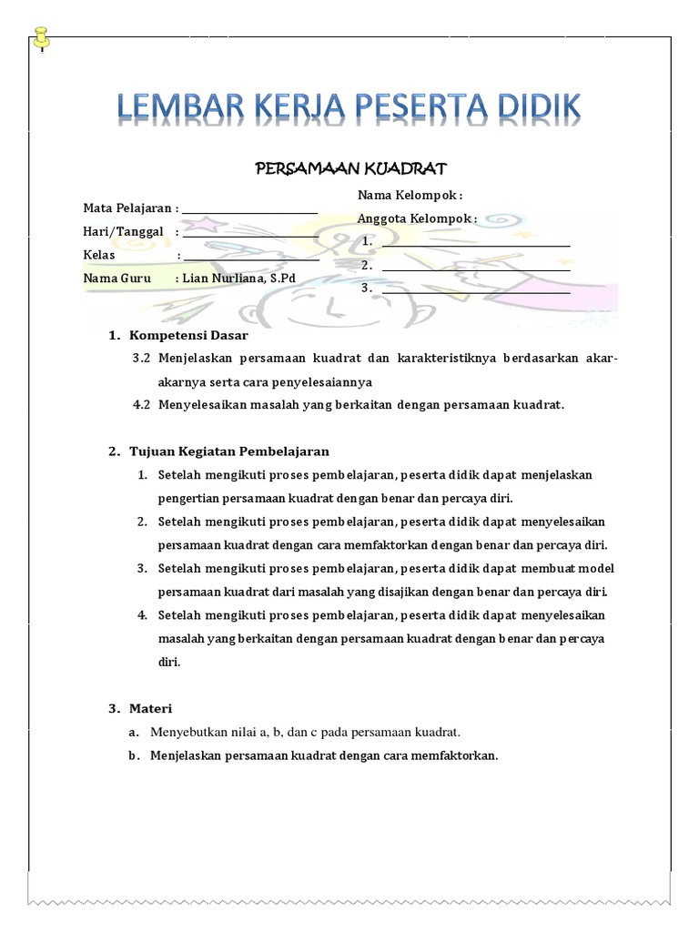 Menyelesaikan Persamaan Kuadrat Dengan Melengkapkan Kuadrat Pendidikan Matematika