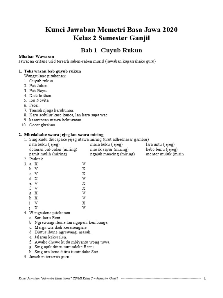 Uji Kompetensi Wulangan 6 Bahasa Jawa Kelas 8 Semester 2 Brainly Guru Ilmu Sosial