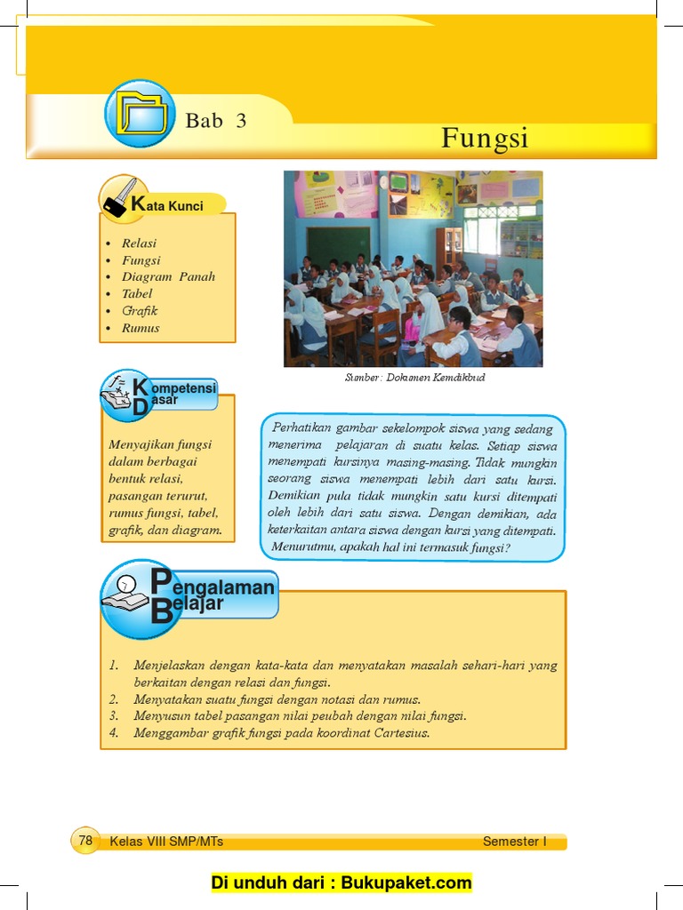 Bab 3 Fungsi Smp Kelas 8 Matematika Bab 3 آ 78 Kelas Viii Smp Mts Semester I Fungsi Bab Pdf Document