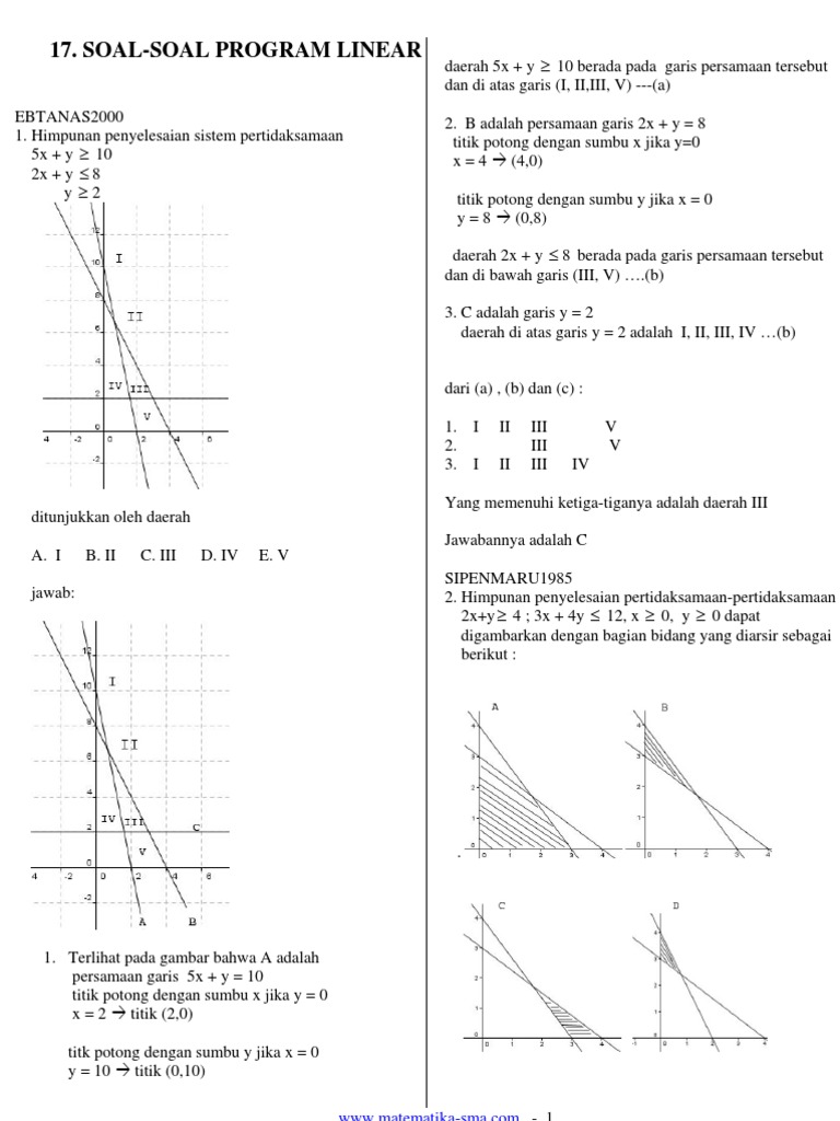 17 Soal Soal Program Linear Program Linear Ebtanas2000 1 Himpunan Penyelesaian Sistem Pertidaksamaan Penyelesaian Suatu Sistem Pertidaksamaan Linier 3 5 5 Pdf Document
