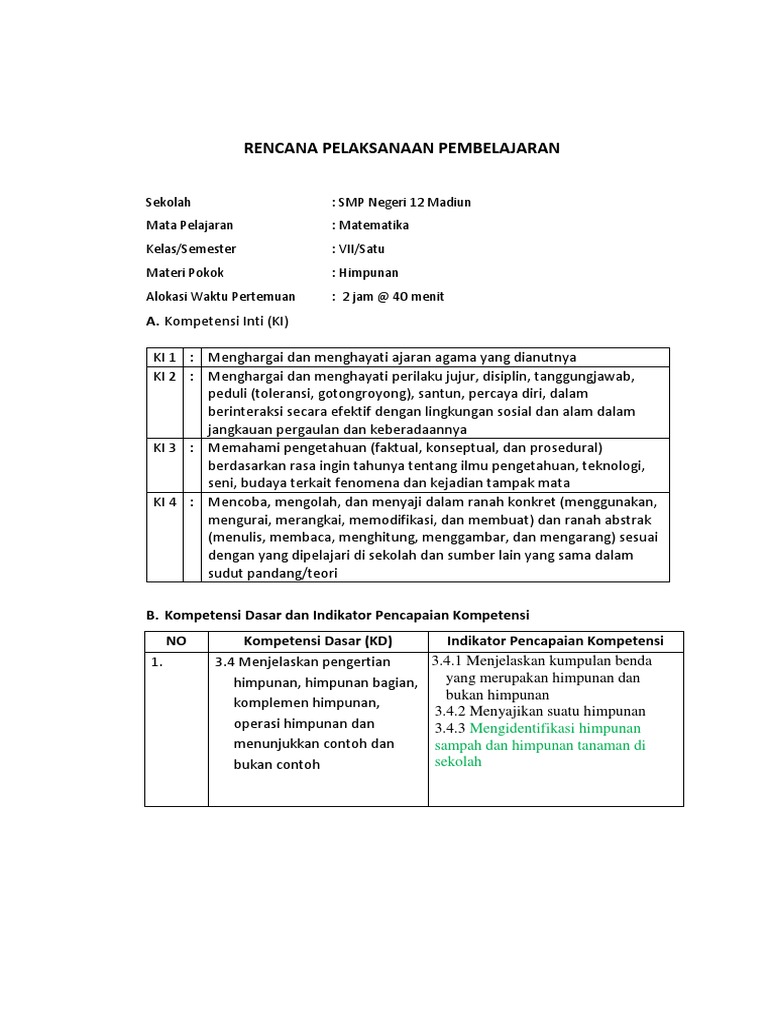 Rpp Menyajikan Himpunan Dan Diagram Venn Kurikulum 2013