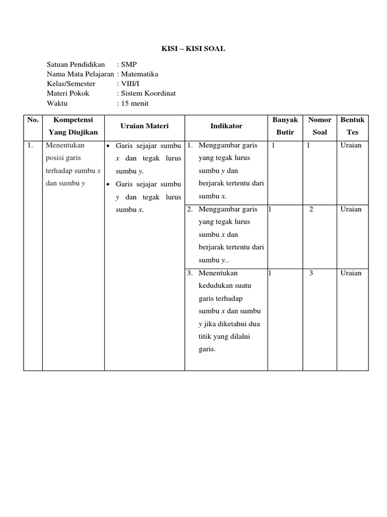 Soal Dan Pembahasan Uji Kompetensi 1 Matematika Kelas 8 Bab 1 Sistem Koordinat K13 Kedai Mipa