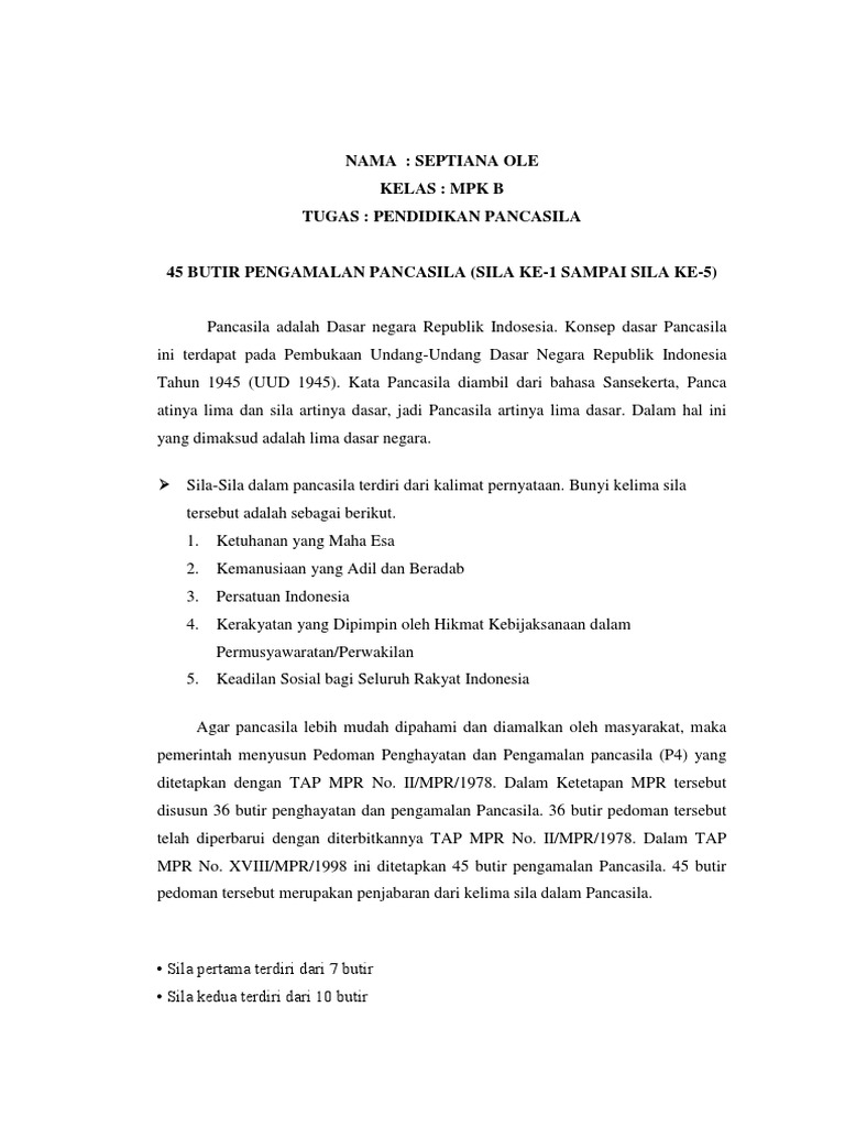 45 Butir Butir Pengamalan Pancasila Sila Ke 1 Sampai Ke 5 Dengan Contoh Dan Penjelasan Markijar Com