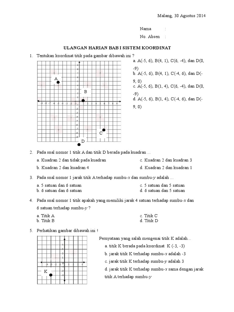 Soal Dan Pembahasan Latihan 1 3 Matematika Kelas 8 Bab 1 Sistem Koordinat Kedai Mipa