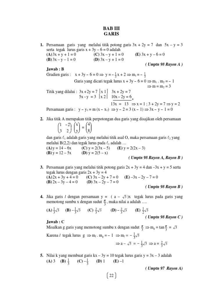 Geometri Analitik Sifat Sifat Garis Dalam Bidang Kesejajaran Dan Perpotongan