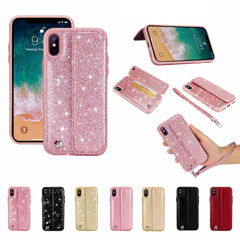 Sparkly For Iphone Xr Xs Max X 10 8 7 Plus 6 Se 5 5s Bling Glitter Id Card Pocket Box Leather Case Sparkle Shiny Flip Cover Pu Luxury Strap Create A