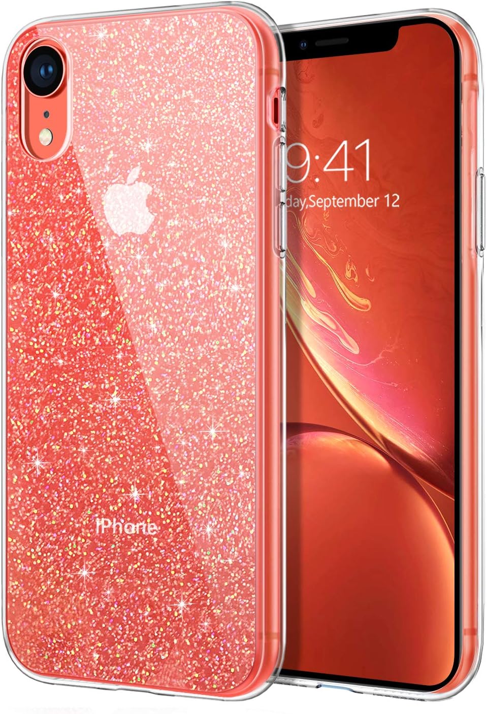 Amazon Com Iphone Xr Case With Tempered Glass Screen Protector 2 Pack For Girls Women Leyi Glitter Bling Sparkle Cute Coral Protective Phone Cover Cases For Apple Iphone Xr 10 10xr 6 1 Tp