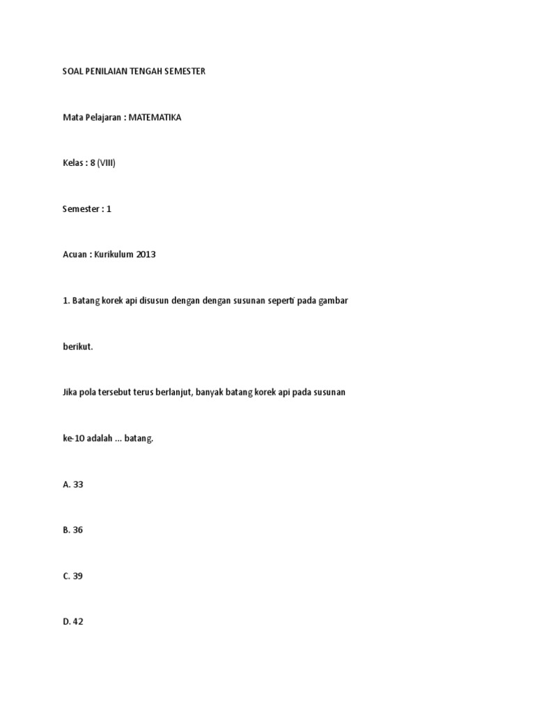 Pola Bilangan Matematika Kelas 8 Bse Kurikulum 2013 Revisi 2017 Uk 5 1 No 01 Pola Batang Korek Youtube