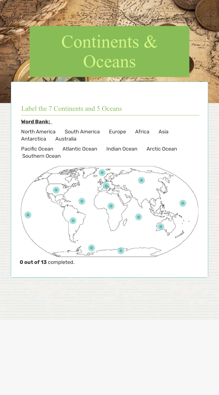 Continents And Oceans Worksheets Free Word Search Quiz And More Itsybitsyfun Com
