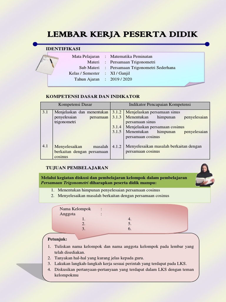 Soal Dan Pembahasan Persamaan Trigonometri Matematika Peminatan Kelas Xi Buku Sukino Lks 9