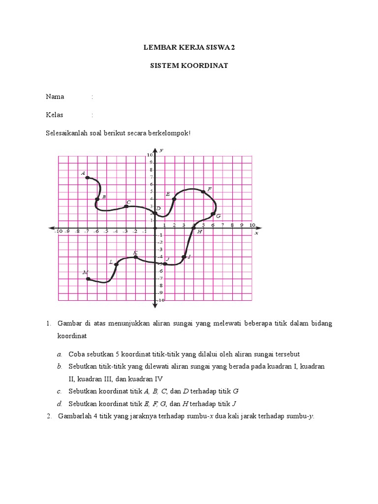 1 Gambar Diatas Menunjukkan Aliran Sungai Yang Melewati Beberapa Titik Dalam Budang Koordinat A Brainly Co Id
