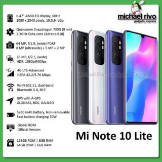Amazon Com Xiaomi Mi Note 10 Lite 128gb 8gb Ram 6 47 64mp Dualsim International Global Version Midnight Black Electronics
