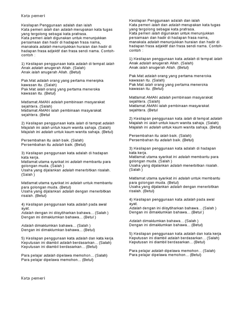 Serambi Pelita Ilmu Analisis Kesalahan Bahasa Jangan Keliru Dengan Penggunaan Kata Pemeri Ialah Dan Adalah