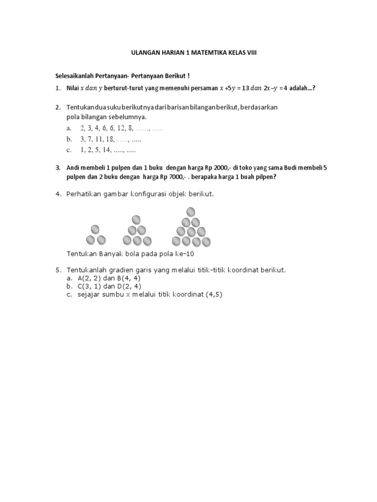 Jawaban Buku Matematika Kelas 8 Uji Kompetensi 1 Hal 34 Pola Bilangan Pentium Sintesi