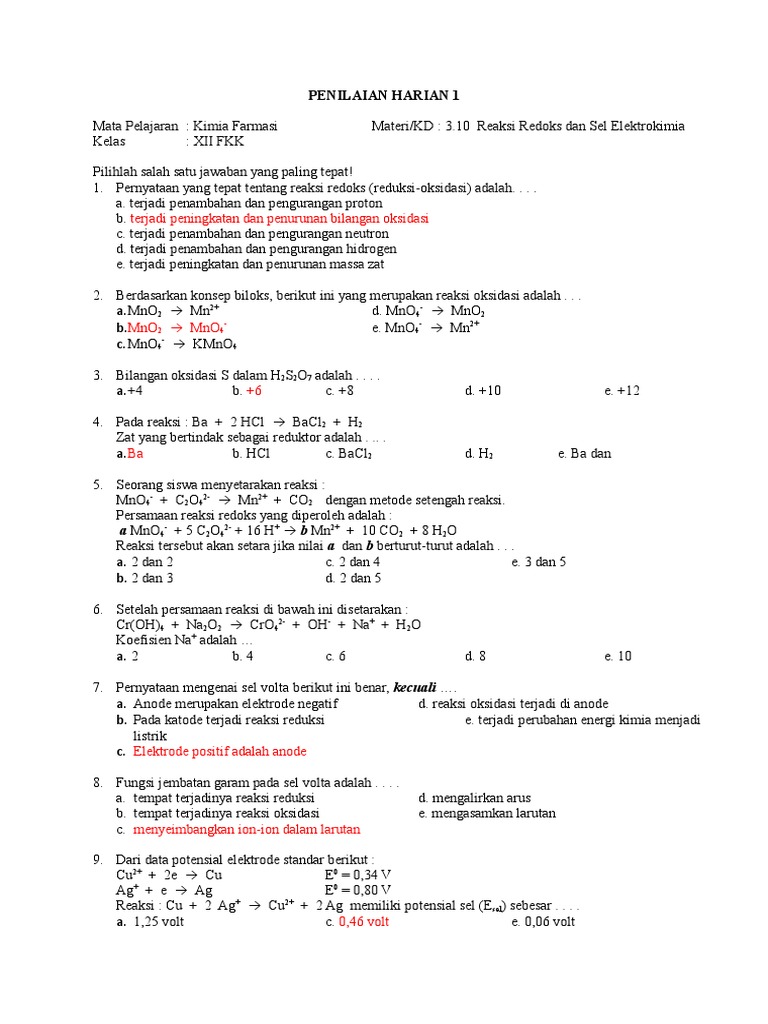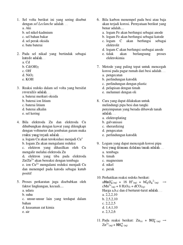 45 Soal Elektrokimia Dan Sel Elektrolisis Pilihan Ganda Pembahasan