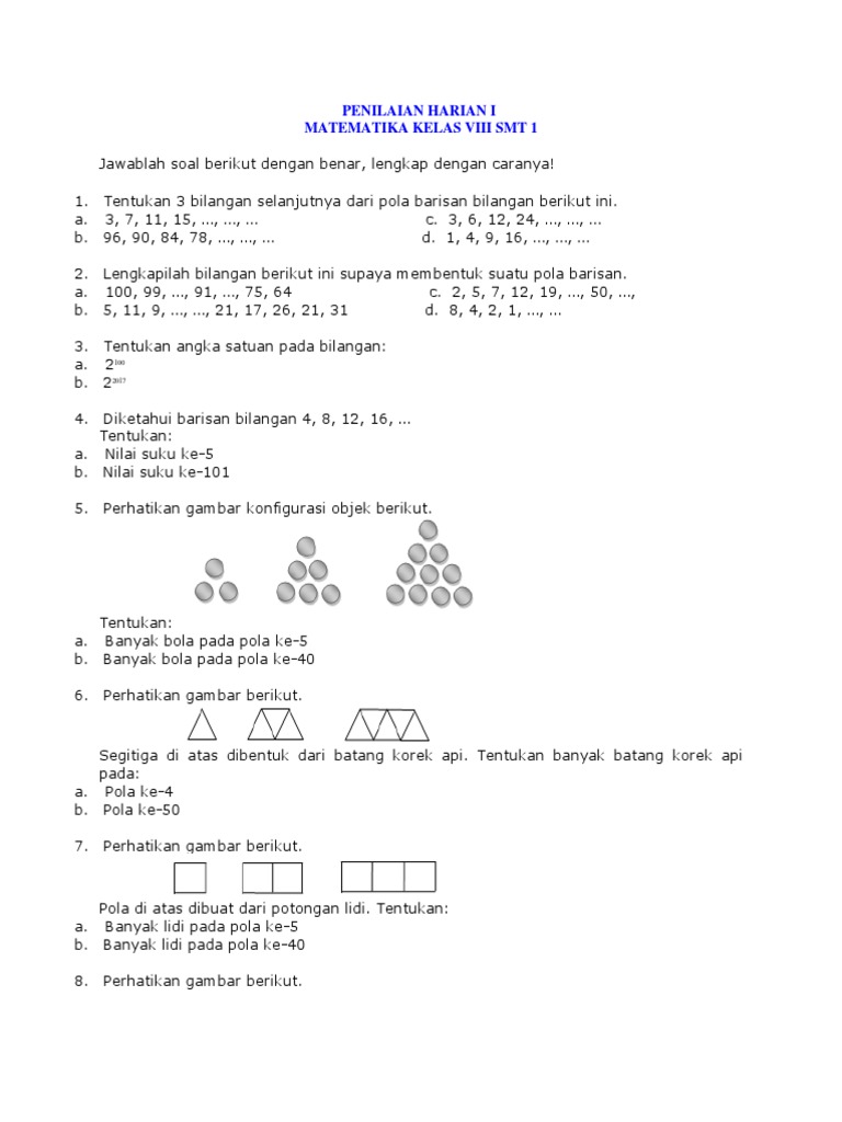Mata Pelajaran 3 1 Menentukan Pola Pada Barisan Bilangan Dan Barisan Konfigurasi Objek 4 1 Menyelesaikan Pdf Document