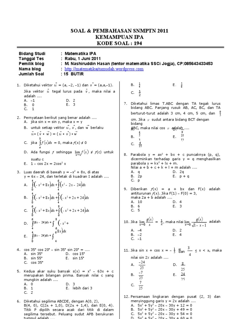 Doc Soal Uh Ipa Ktsp Bab Sumber Daya Alam Lingkungan Teknologi Dan Masyarakat Martiana Norwahidah Academia Edu