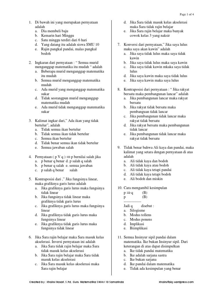 Tentukanlah Nilai Kebenaran Benar Atau Salah Setiap Pernyataan Dibawah Ini Berikan Penjelasan Brainly Co Id