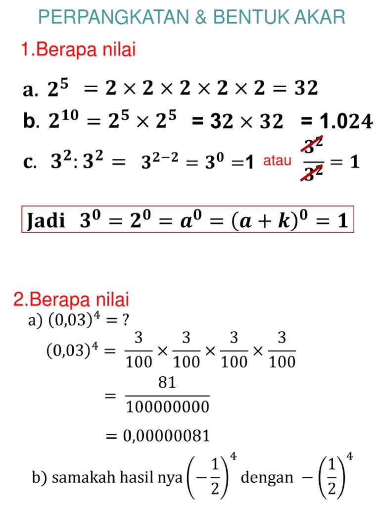 3 Nyakatan Bilangan Bilangan Berikut Dalam Bentuk Pangkat Positif A 3 A A Pangkat Empat Akar Brainly Co Id