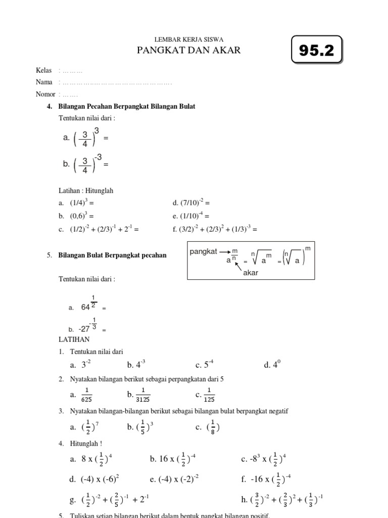 Muatan Materi Topik Aljabar Materi Pangkat Bilangan Pecahan Berpangkat Pecahan Dan Negatif Penjumlahan Atau Perkalian Baik Untuk Basis Biasanya Keluar 3 4 Soal Pdf Document