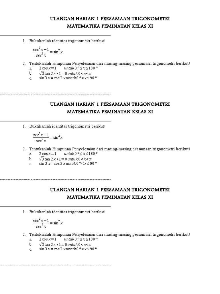 Persamaan Trigonometri Soal Revisi Antiremed Kelas 11 Matematika Peminatan Persamaan Trigonometri Pdf Document