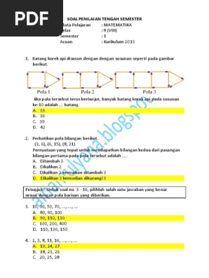 Matematika Menjawab Kunci Jawaban Uji Kompetensi 1 Matematika Kelas 8 K13 Matematika Menjawab