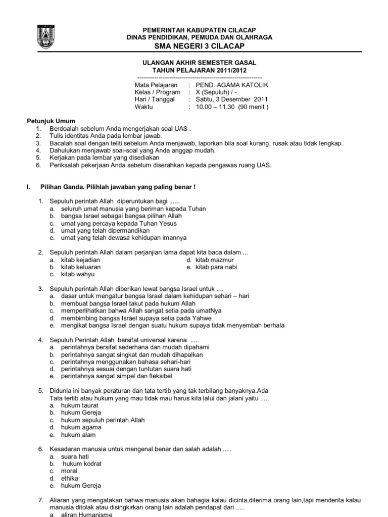 Soal agama katolik semester 1 kelas 6 informasi guru berikut ini adalah soal agama katolik semester 1 kelas 6 yang bisa anda download secara gratis di website kami. Soal pts uts pai dan budi pekerti kelas 6 semester 1 k13 tahun 20192020 khanza aulia kelas 6 kumpulan soal soal uts 14 comments berikut ini adalah contoh latihan soal pts uts pendidikan agama islam dan budi pekerti kelas 6 kurikulum 2013 terbaru tahun ajaran 20192020. Lihat kisah para rasul 1.