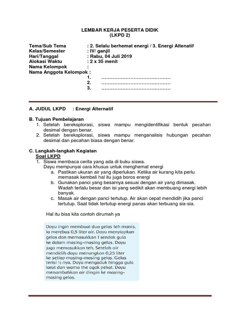 Lengkap Kunci Jawaban Tematik Kelas 4 Tema 2 Selalu Berhemat Energi Kumpulan Soal Ujian