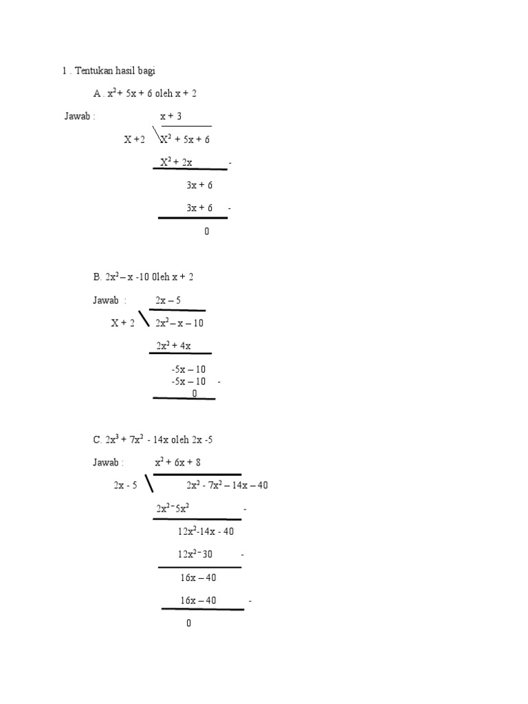 Tentukan Hasil Bagi A 12x3 4x2 Oleh 2x2b X2 5x 6 Oleh X 2c 2x2 X 10 Oleh X 2d 2x3 Brainly Co Id