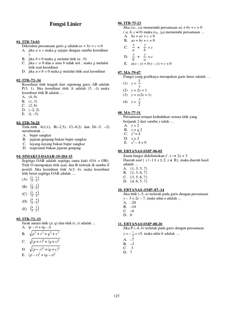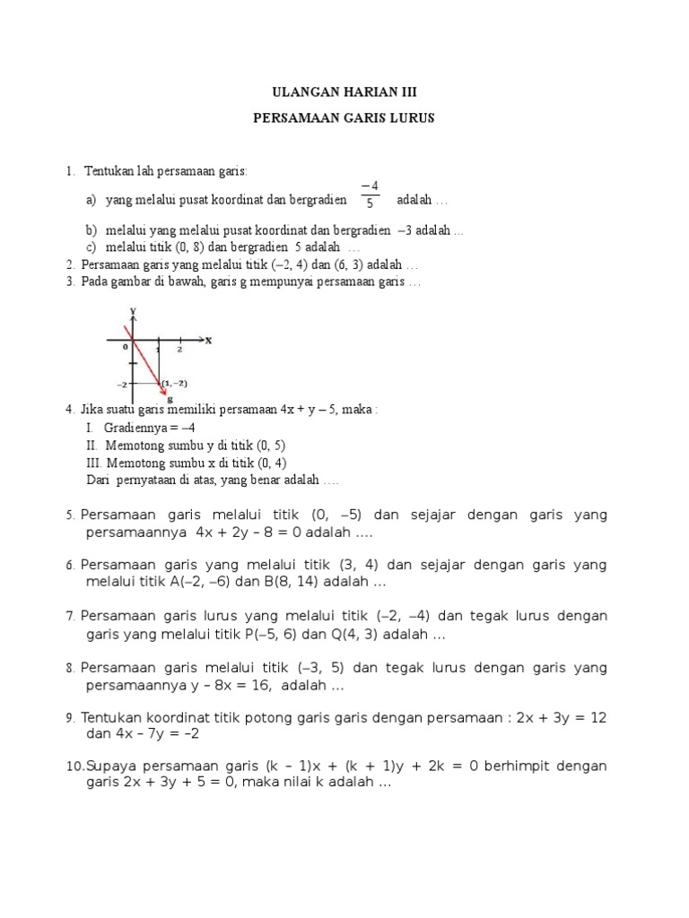 8 6 1 Soal Dan Pembahasan Persamaan Garis Lurus Matematika Sltp Ke