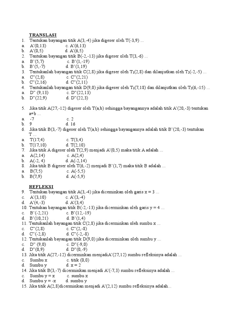Ulangan Akhir Semester Genap D Berjarak 3 Satuan Terhadap Sumbu X Dan Berjarak 4 Satuan Terhadap Sumbu Y Pdf Document