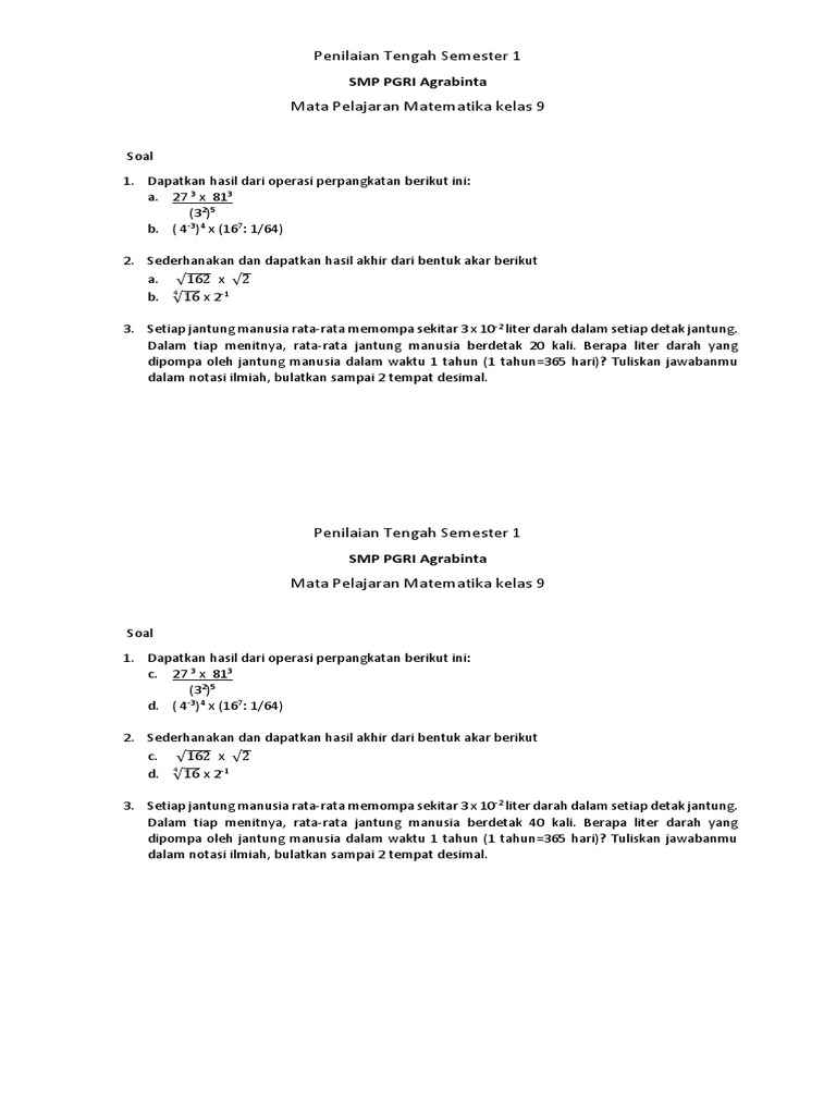 Matematikakelas9 Masduki 1dpn Latihan Soal Uji Kompetensi Serta Latihan Semester Pada Pengantar