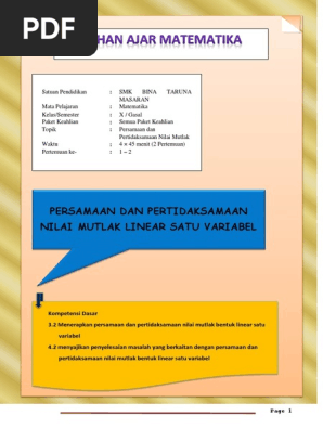 Nilai Mutlak Persamaan Dan Pertidaksamaan Bse Matematika Kelas 10 K 13 Revisi 2016 Uk1 2no2abc Youtube