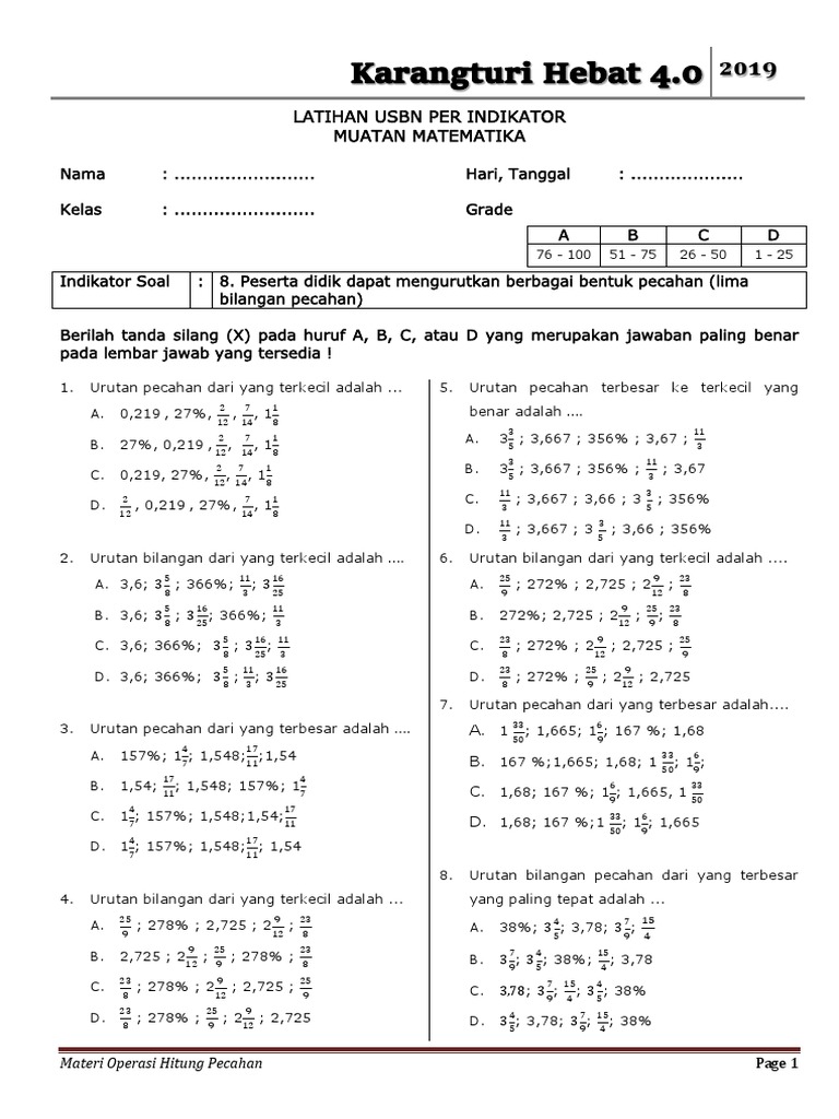 Cara Mengurutkan Pecahan Dari Kecil Ke Besar Bahasan Soal Prediksi Un Us Sd Paket 1 7 Youtube
